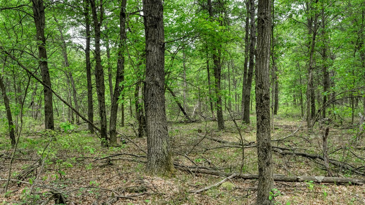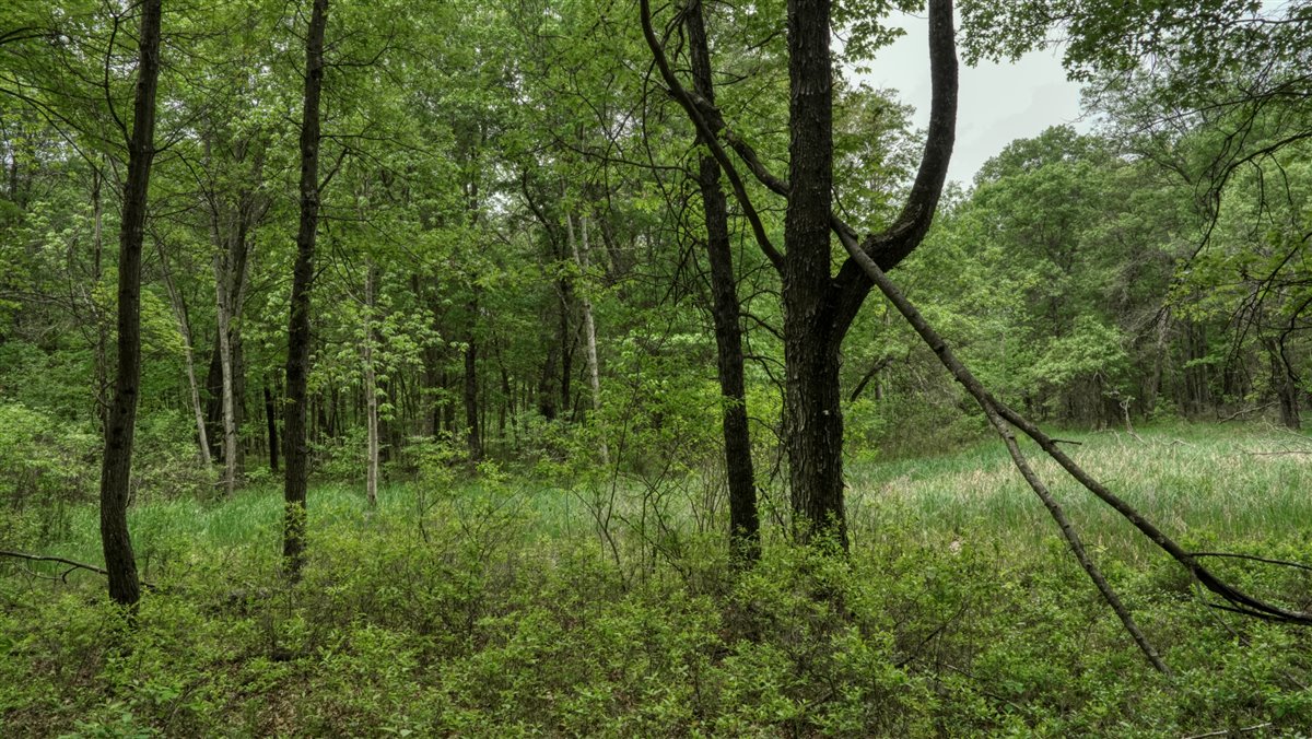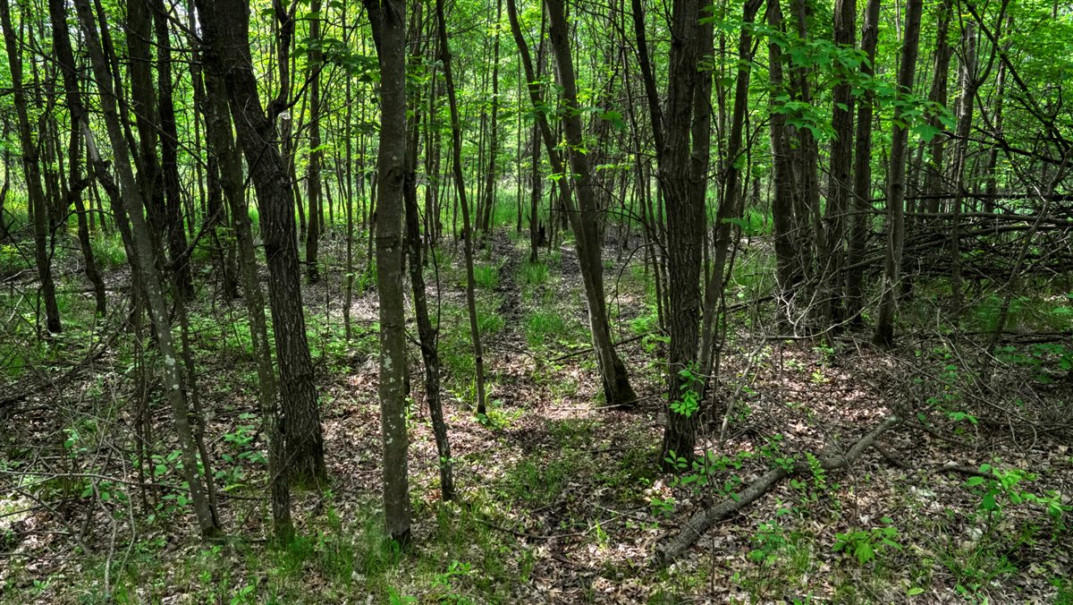 The landscape combines early successional cover, wetland pockets, and black oak, white oak, and red maple hardwoods, offering diverse cover, browse, and mast for wildlife. The early successional stands of timber are the result of a logging project from 7-8 years ago. The vigorous young hardwoods are primarily oak, red maple, aspen, and cherry.