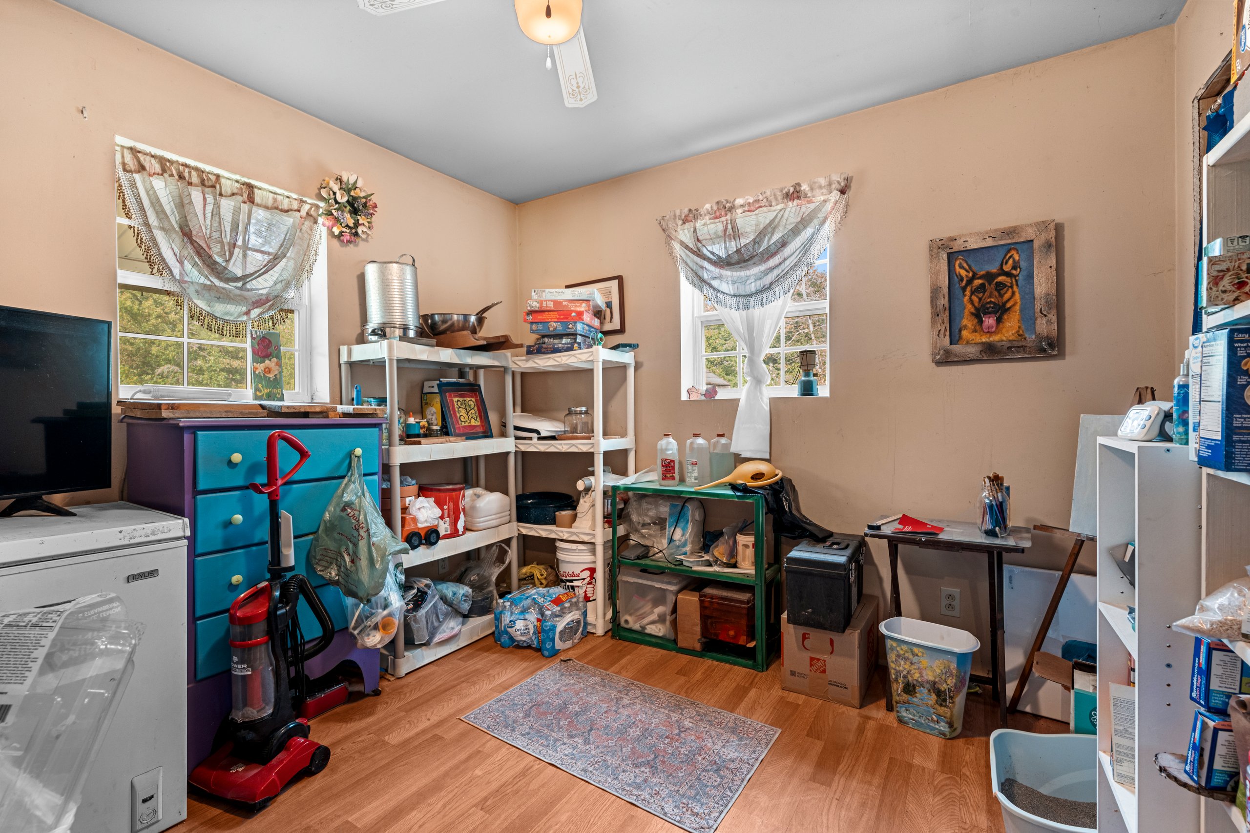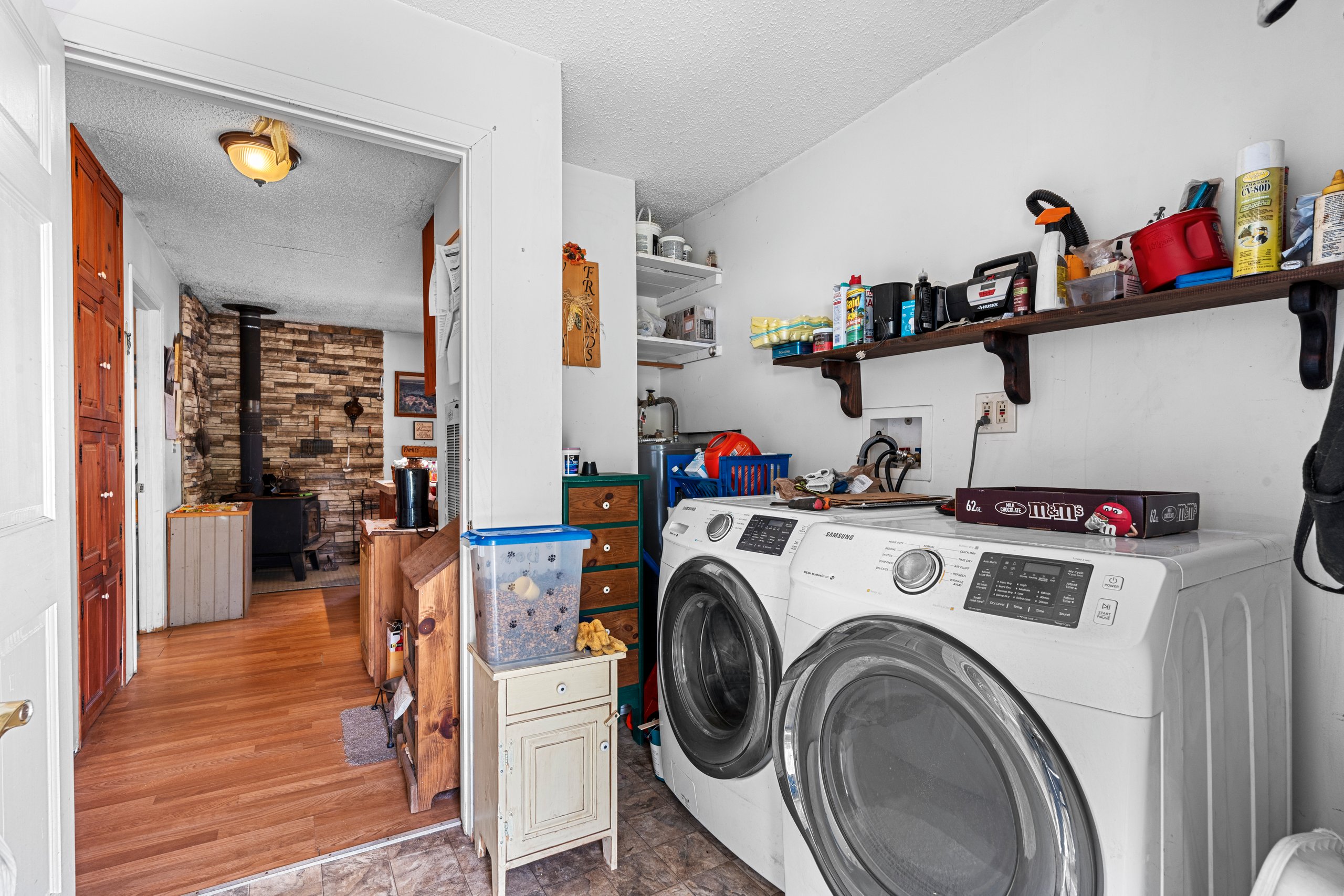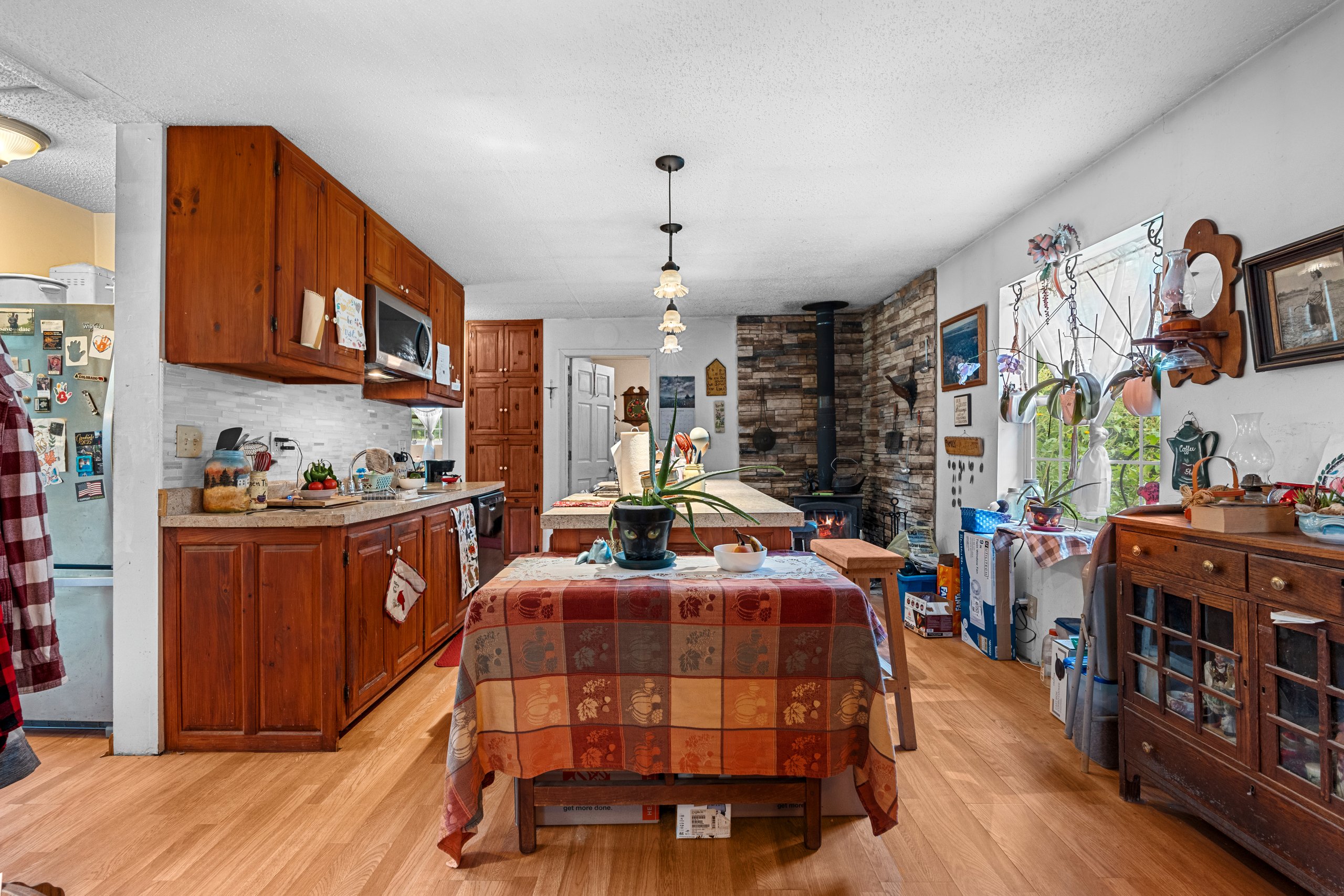 The 3-bedroom, 1-bath home is another highlight. Originally built in 1960, it was taken down to the studs and completely rebuilt in 2012. Updates included 2×6 outer wall construction, full insulation, new wiring, new plumbing, and modern finishes. The result is a move-in ready residence with open-concept living, a built-in pantry, propane forced air, and a woodstove backup for cold winter mornings. The home is supported by a 26’ Sandpoint well and a lift-pump mound septic system.