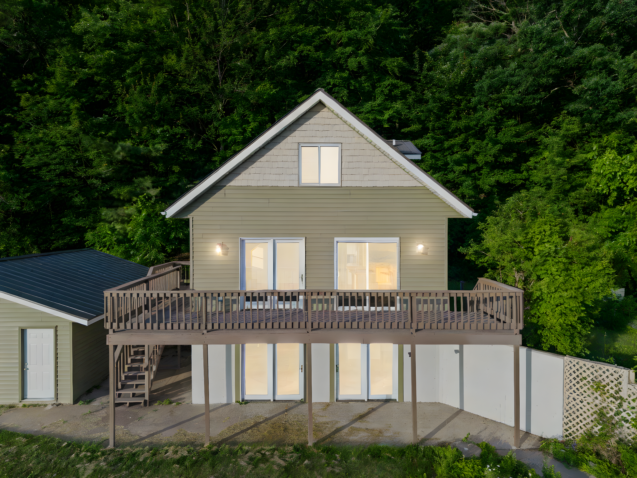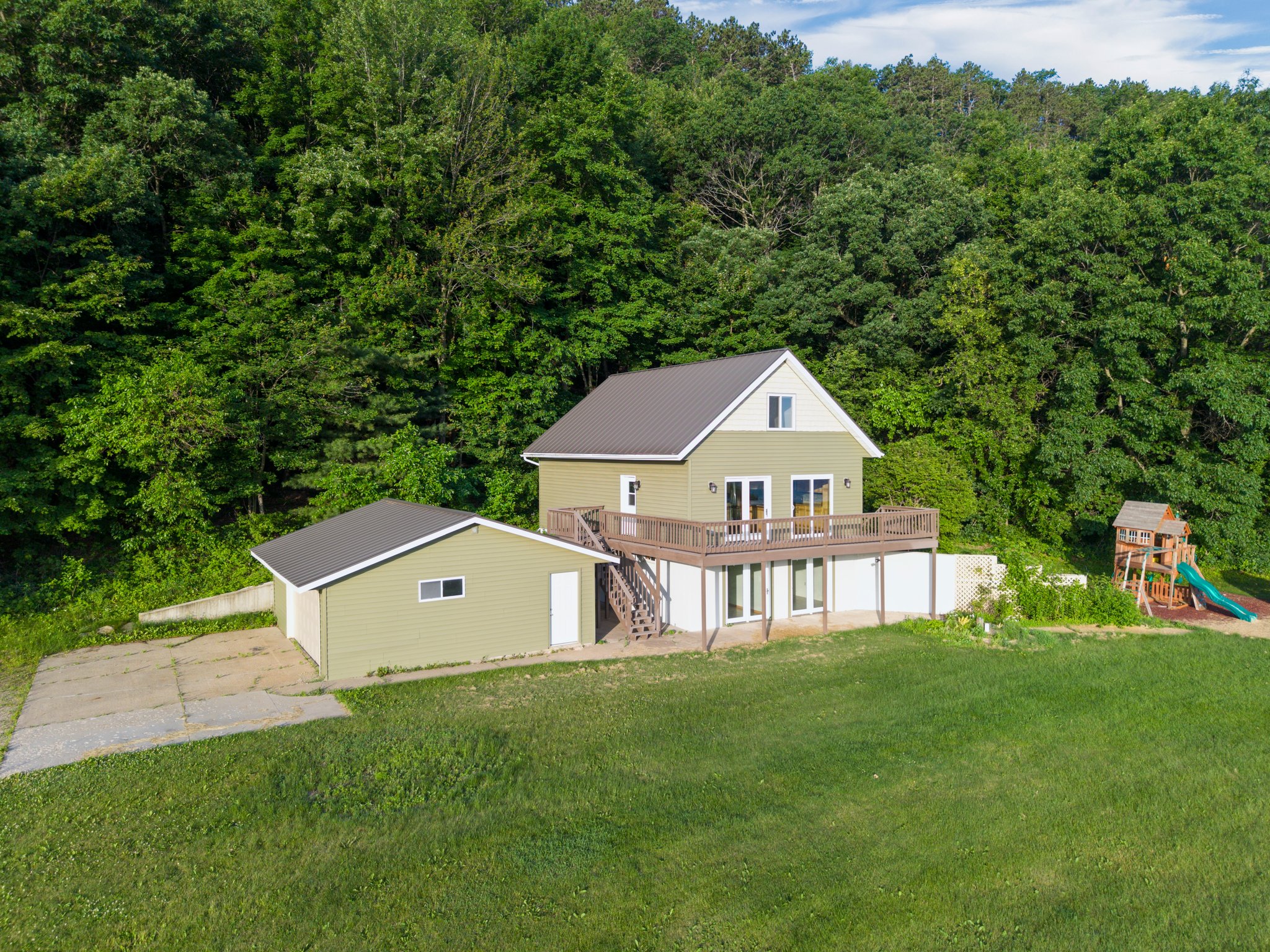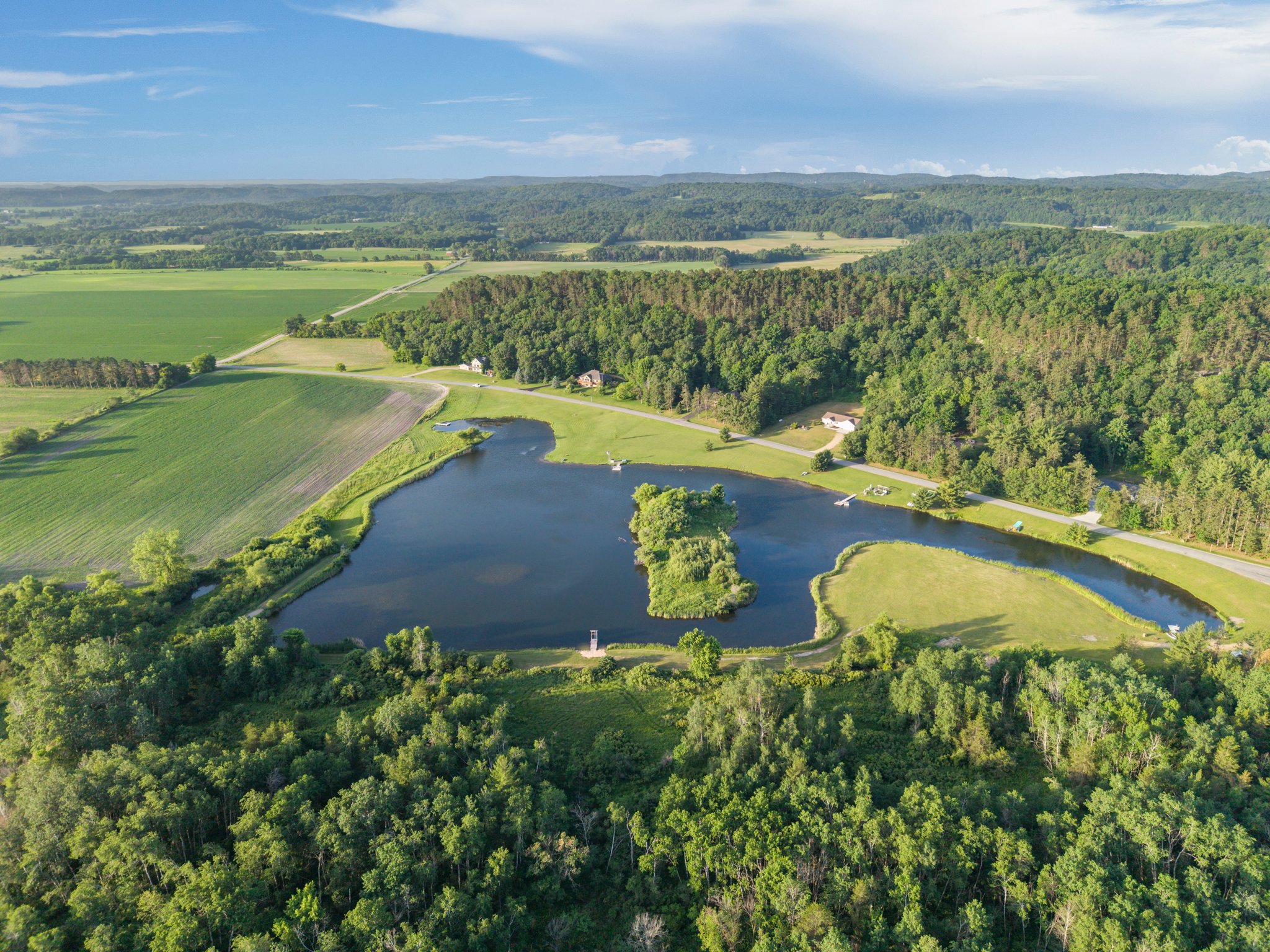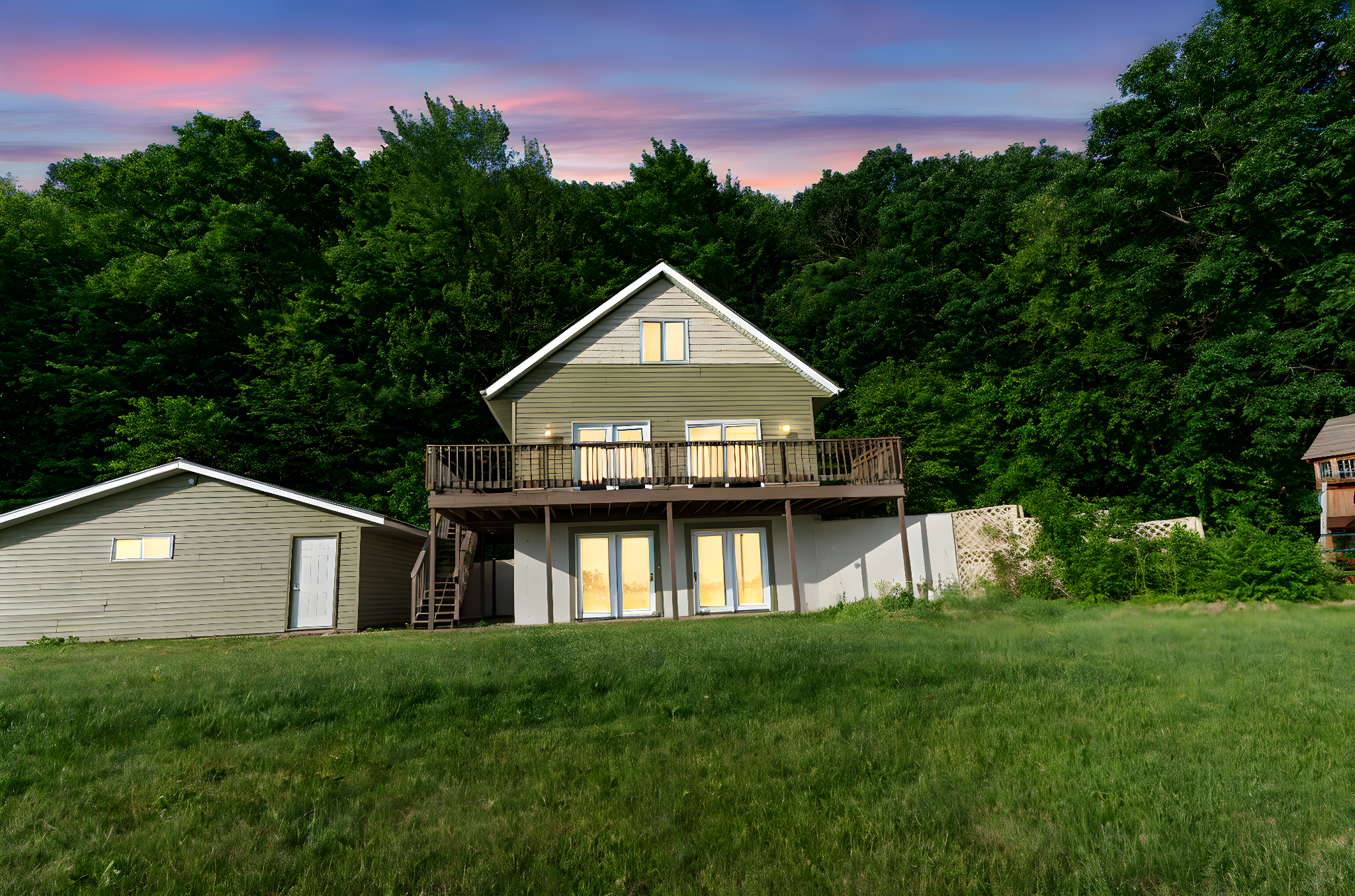 Nestled on a quiet dead-end road, this chalet-style home beautifully surveys your sprawling 19.9-acre estate, complete with access to a private, shared pond! With ample space for the entire family, this residence boasts 2,450+/- sq. ft. featuring 4 bedrooms, 3 bathrooms, a detached 2-car garage, and an extra non-conforming bedroom on the walk-out lower level. Imagine raising your family in the outdoor lifestyle—playing, canoeing/kayaking, fishing, hunting, gardening, and more!