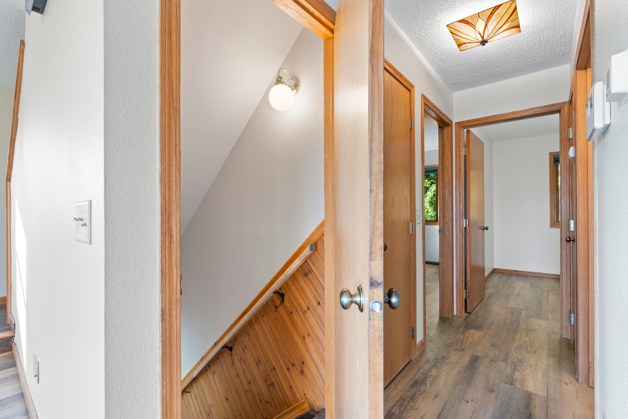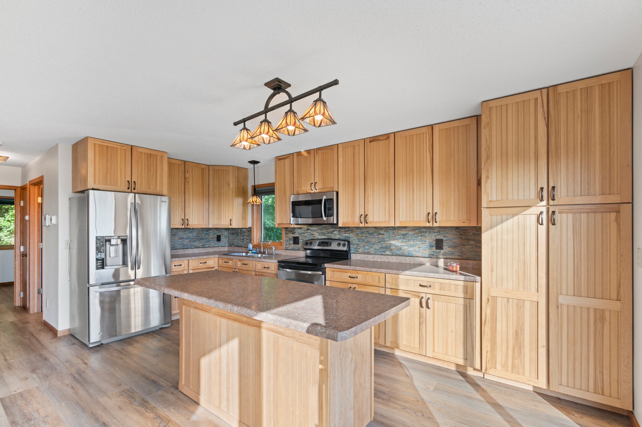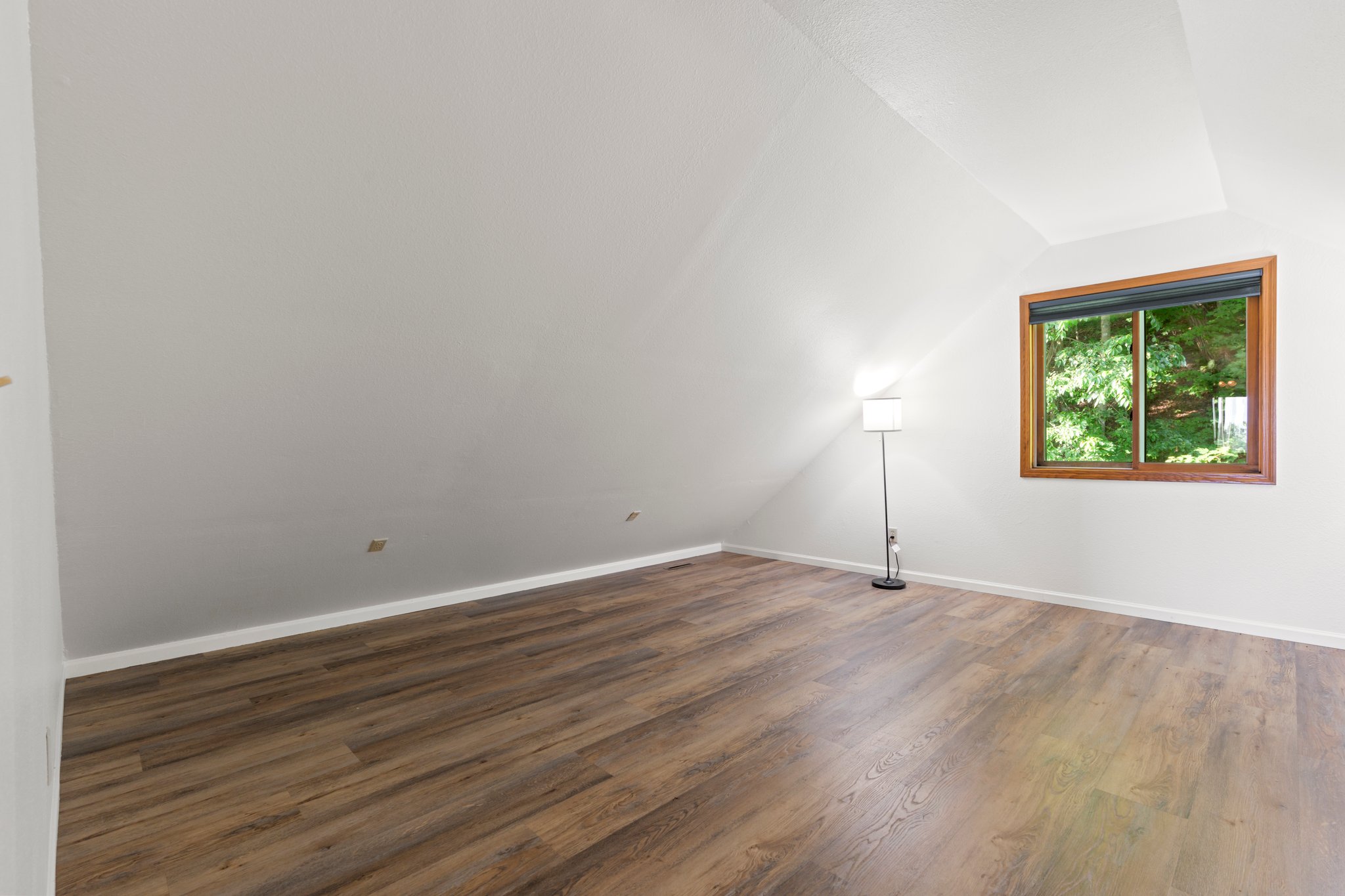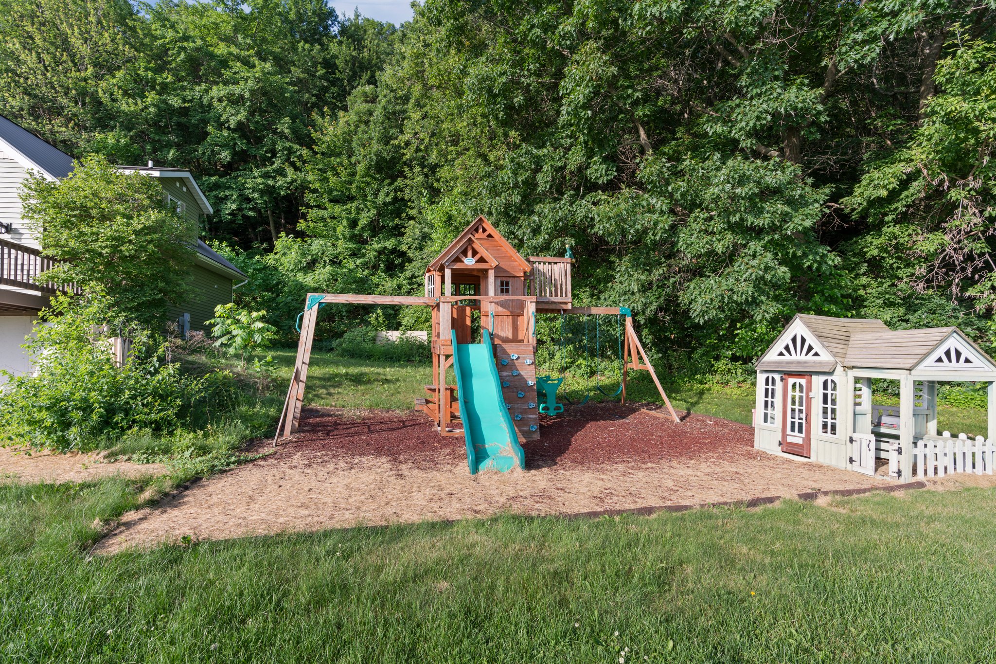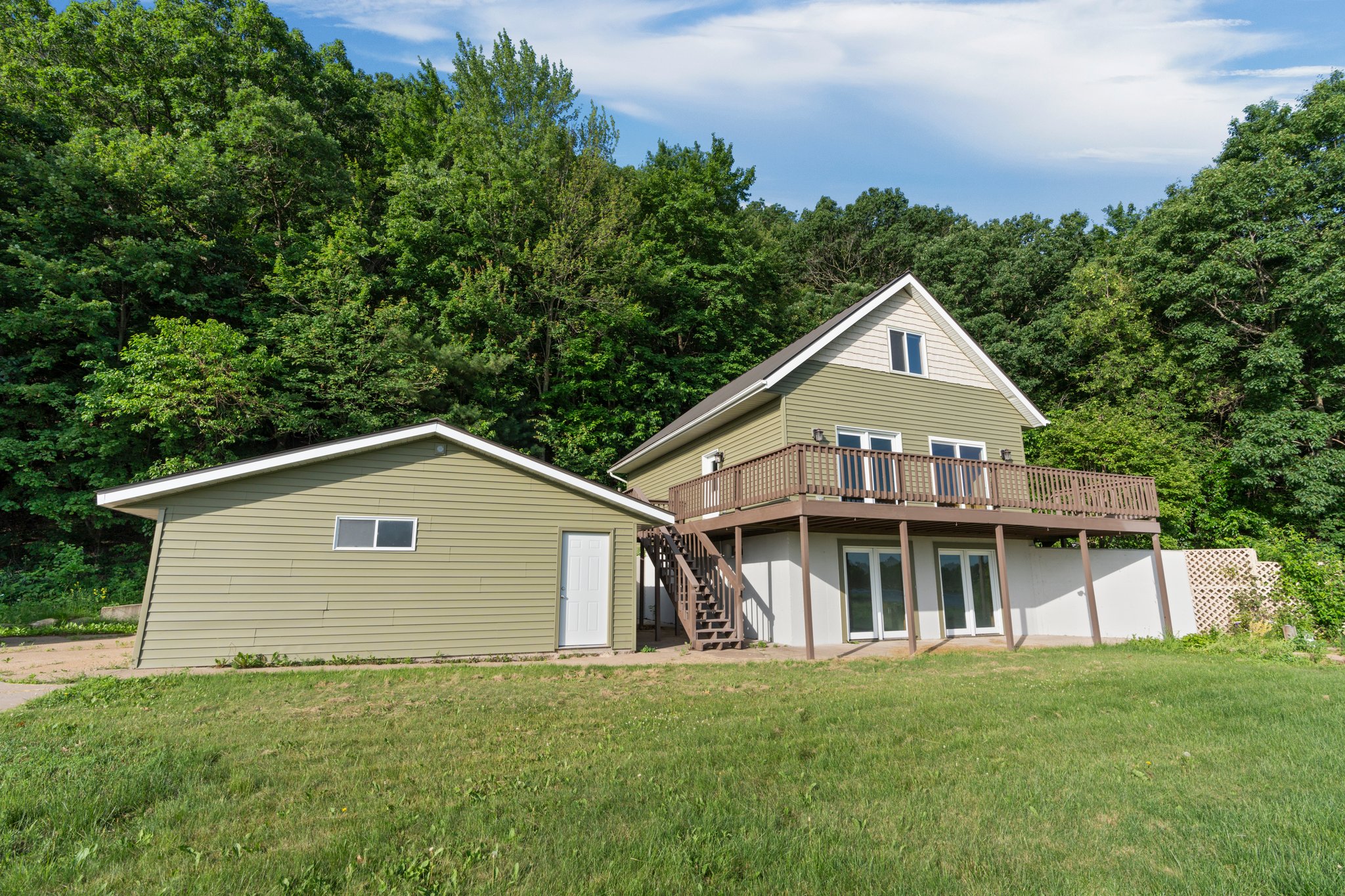 Nestled on a quiet dead-end road, this chalet-style home beautifully surveys your sprawling 19.9-acre estate, complete with access to a private, shared pond! With ample space for the entire family, this residence boasts 2,450+/- sq. ft. featuring 4 bedrooms, 3 bathrooms, a detached 2-car garage, and an extra non-conforming bedroom on the walk-out lower level. Imagine raising your family in the outdoor lifestyle—playing, canoeing/kayaking, fishing, hunting, gardening, and more!