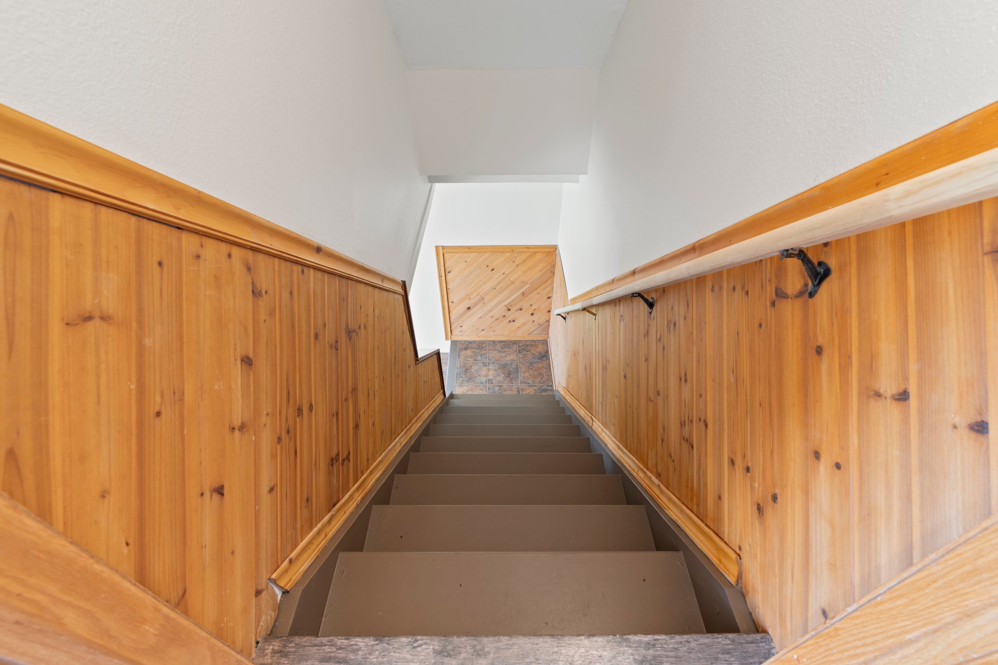 The main level welcomes you with a great room/living room space that seamlessly flows into a contemporary kitchen adorned with custom hickory cabinets, a detachable island, and stainless-steel appliances, all enhanced by rustic vinyl plank flooring. Step through either of the sliding glass doors onto an elevated deck overlooking your countryside playground. Back inside, a full bath and 2 bedrooms complete the main floor.
