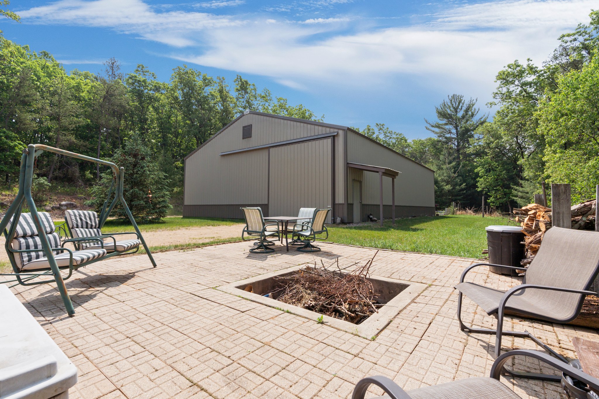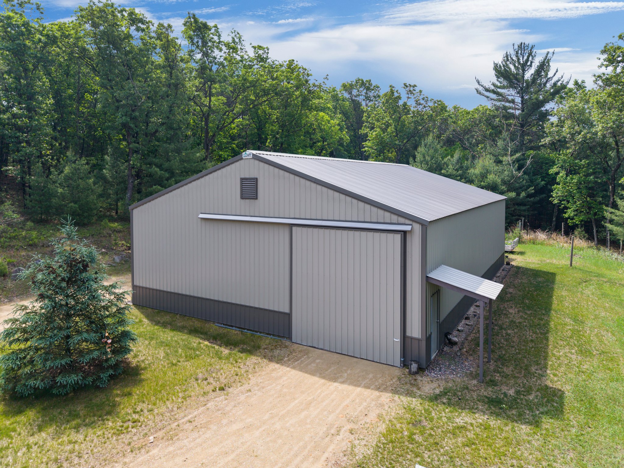 Adjacent to the home, a 45’x63’ pole barn offers significant storage capacity with dual 14’ overhead doors and electric service. Whether housing UTVs, tractors, boats, or other recreational equipment, this structure adds tremendous functional value without compromising the property’s visual appeal.